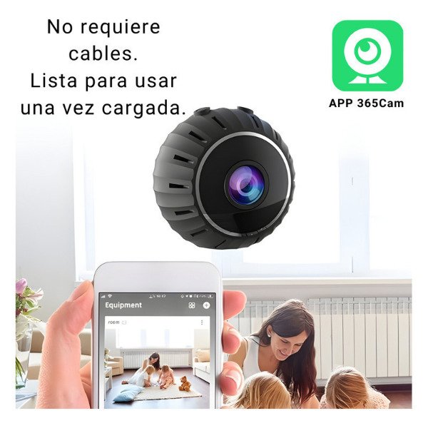 Conectala a la app 365cam disponible en Google Play y Apple Store y monitoreá tu hogar, oficina o cualquier espacio desde tu celular. Su capacidad de rotación 360º y su ángulo de visión de 150° garantizan cobertura total, mientras que su batería incorporada asegura horas de funcionamiento continuo sin necesidad de cables.