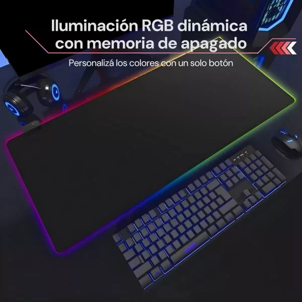 Experimentá un nuevo nivel de comodidad y precisión con el Mouse Pad Gamer RGB CG, diseñado para mejorar tu rendimiento en cada partida. Con su superficie de microfibra ultra suave, proporciona un deslizamiento fluido y preciso, ideal tanto para movimientos rápidos como para maniobras de alta precisión. Su tamaño XXL de 80 x 30 cm te permite colocar el teclado y el mouse con total libertad, asegurando una experiencia de juego sin restricciones.
